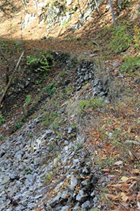 谷筋に沿って古い道のようなところを通り、概に木々に覆われ最近では人の通った形跡は無いような場所も多く、近年の集中豪雨の被害が増える要因となっています。