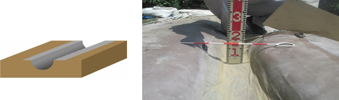 曲がった状態でも硬化するため、排水溝等を形成することが出来ます