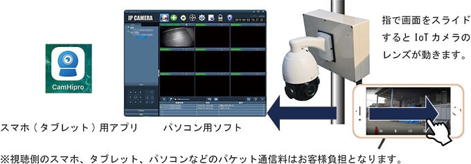 みまわり名人とは、太陽光パネル発電により蓄電した電力を利用して、あらゆる場所のライブ映像をスマートフォンやタブレット、パソコンから確認できるIoTカメラのレンタルサービスです。