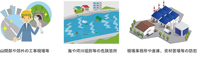 電源不要!独立型太陽光パネル発電システムを採用しているので、仮設電源工事も不要。通信接続をするための設定も不要。緊急時でも設置したその日から監視ができます。