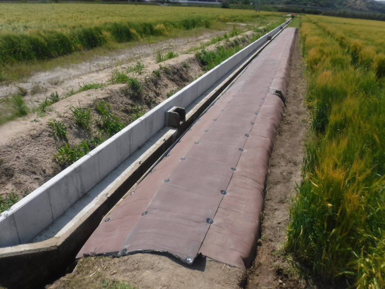 農道や山道などにドライマットを敷設すれば簡易な遊歩道、管理道になります。ドライマット敷設時は柔らかいので地面の形に合わせて敷設できます。