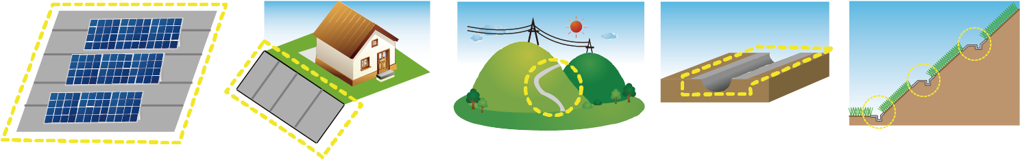 ・太陽光発電所の下地保全対策として ・遊歩道の浸食防止対策として