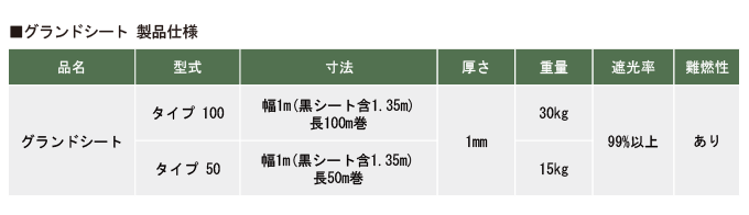 グランドシートは、ドライマットから生まれた難燃性、遮光性に優れた上層シートと、遮水性、遮光性の高い下層シート(黒シート)が複合した高機能防草シートです。