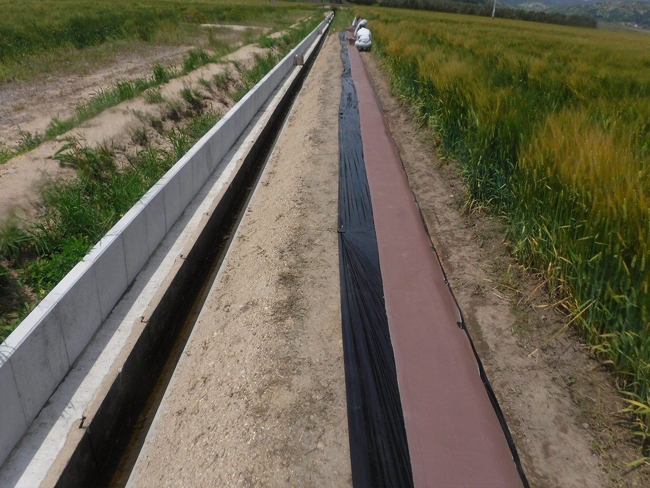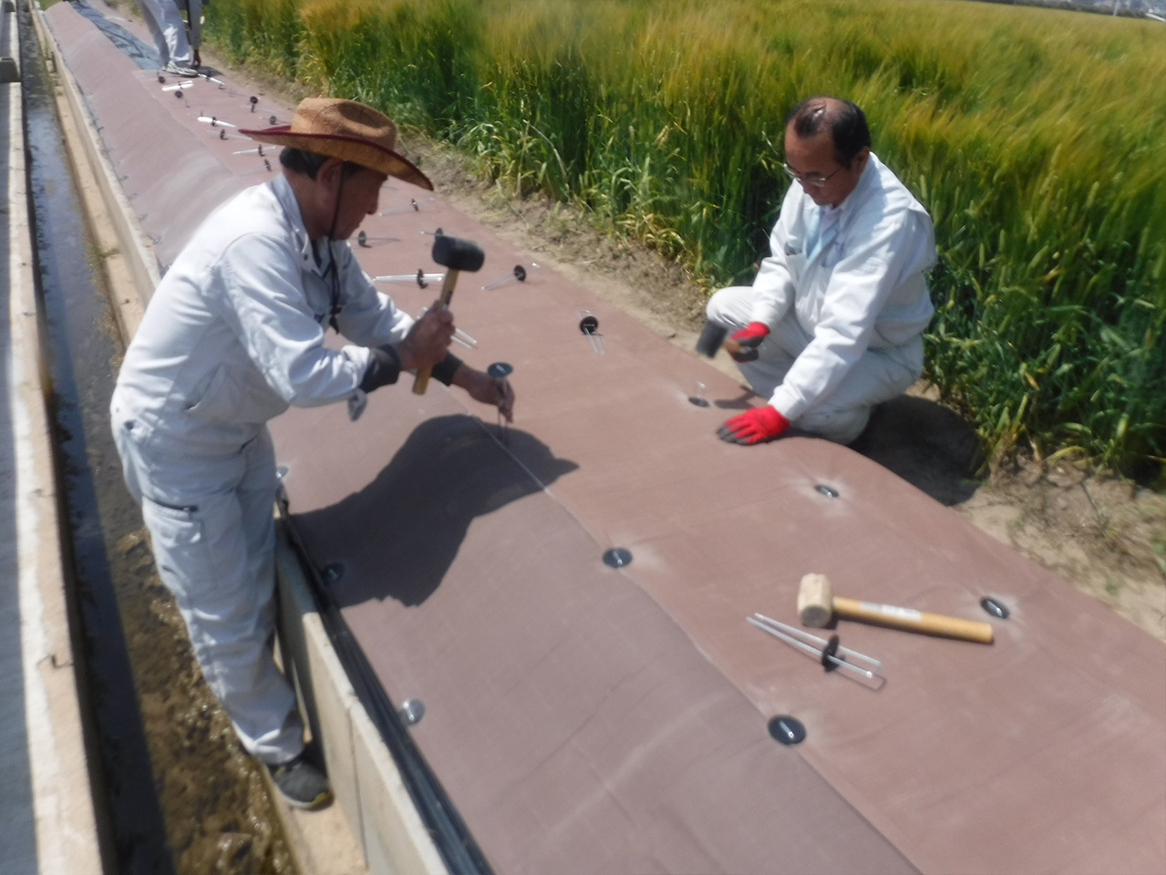 農道や山道などにドライマットを敷設すれば簡易な遊歩道、管理道になります。ドライマット敷設時は柔らかいので地面の形に合わせて敷設できます。
